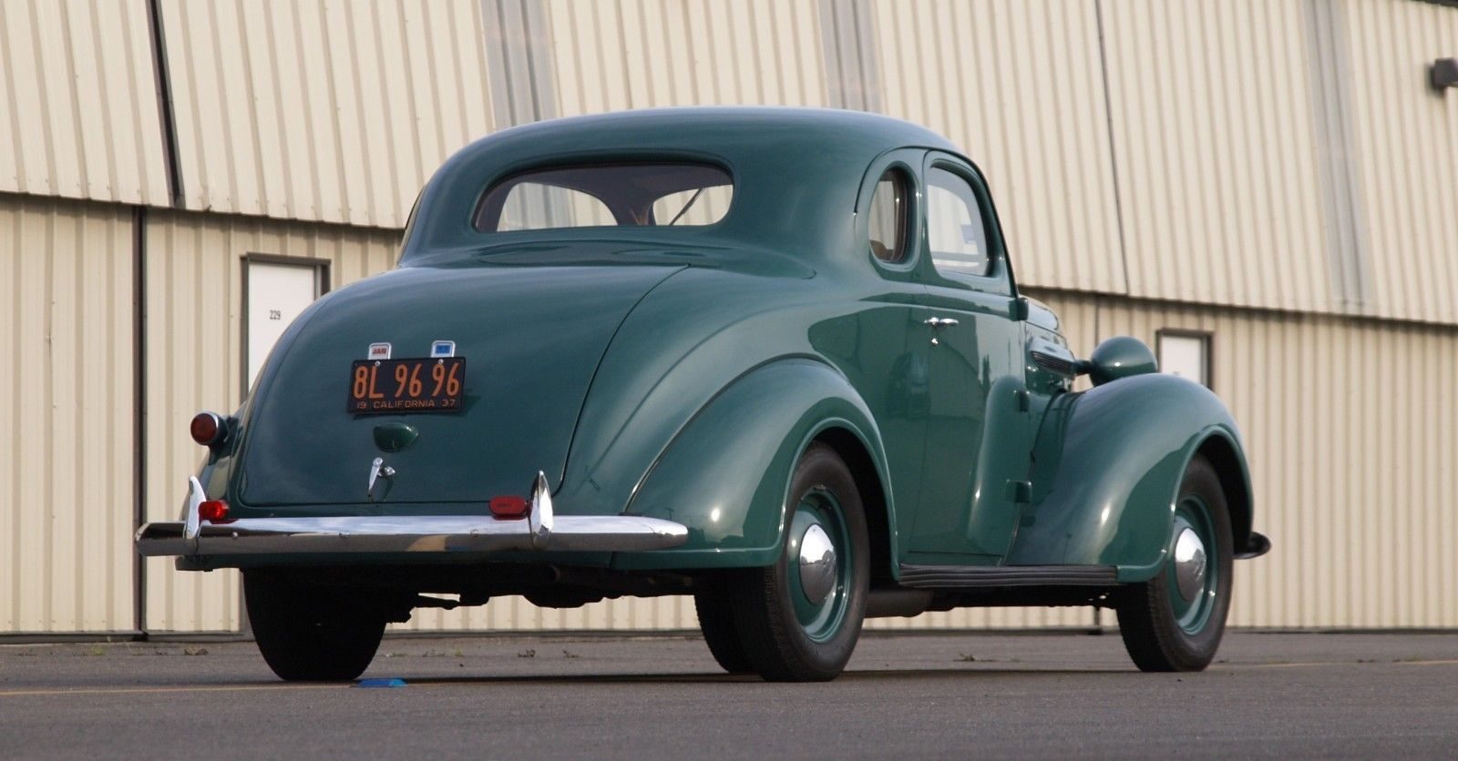 Painted dash board and no vent wings – probably the P3 “Business” series rather than the P4 Deluxe. Bogart also drove a ’37/’38 (it keeps switching back and forth from one year to the next) in “High Sierra” and also in “Dark Victory” with Bette Davis.