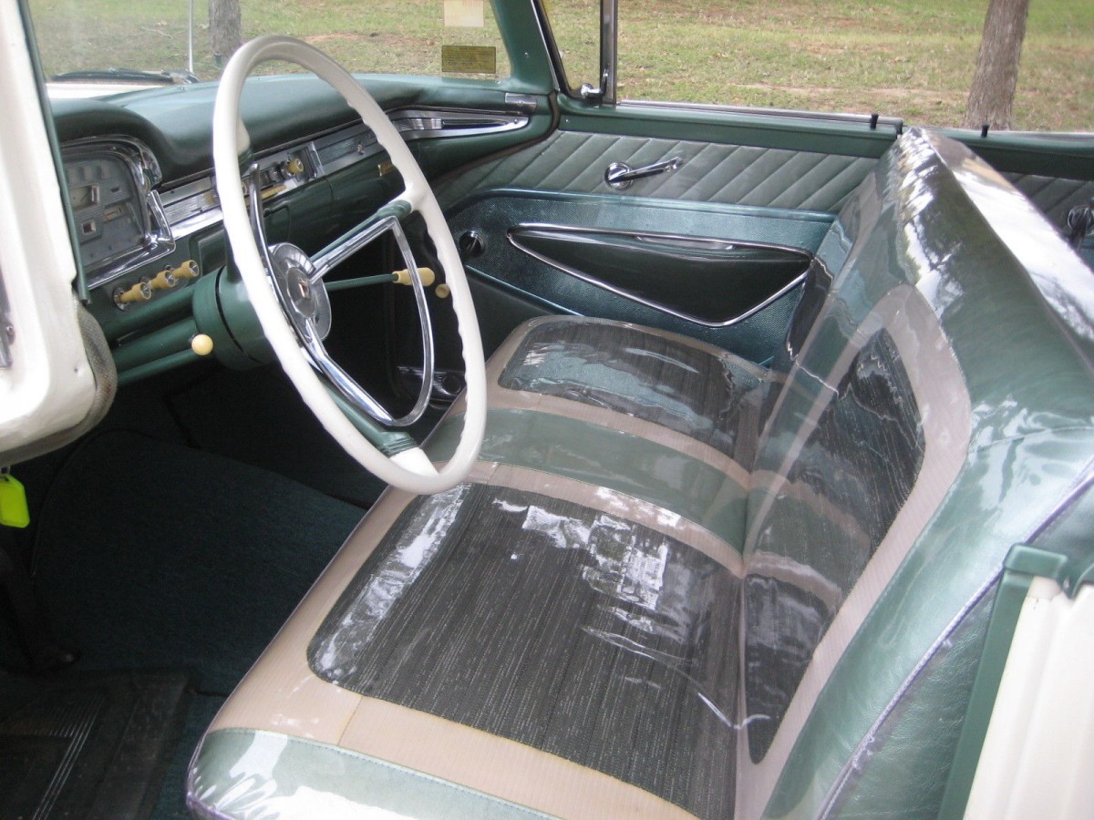 My dad had the same car , white over light yellow i can still remember the silver thread in the seats that most cars had back then . ours was a 4 door hardtop that leaked when we would go through a car wash