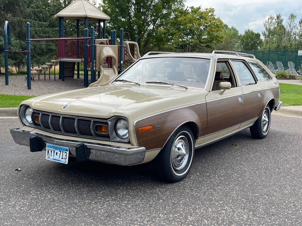 I used to have a 1975 Sportabout, purchased back in the 1990s for $100. Had it for several years but rust finally did it in. Mine had no fake wood but had the bigger six, non-power front disk brakes, and air conditioning. Without air conditioning these cars have essentially zero ventilation with windows closed and of course they lack the old Rambler American’s wonderful vent windows and kick panel vents. (There is a small vent under the dash but it’s pretty much a cruel joke.)