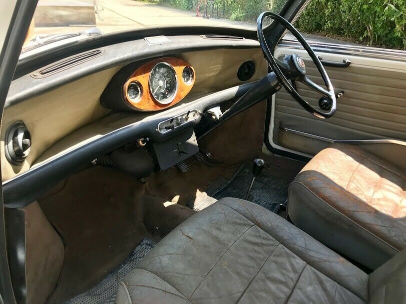 The Elf was a prettier car, it seems to me. (Thanks for the reminder, Luke). On the leather seats: I don’t think anyone could improve on the comfort provided by the Cooper seats, and this comes from a guy who spent 25 hours, in January 1967, driving from Toronto to Chicago, through a snowstorm that closed down a major portion of North America. Last of all, there does not seem to be anything other than minor surface rust showing. Afterthought: by 1968, had they not already changed over to alternators? This may be a replacement engine on top of the original tranny.