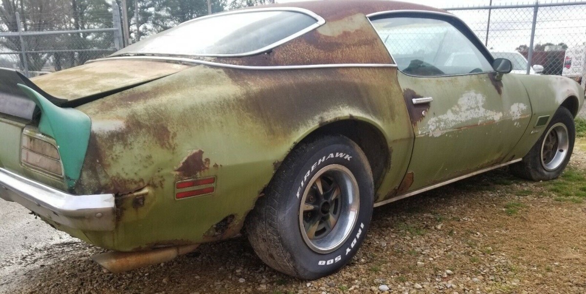 Exactly the color and condition of the one I sold in Tennessee in 2009, except mine was a green 74 Formula. The tin worm had taken hold in the previous owner’s dirt driveway. They created a nest and slithered throughout the vehicle, and allowed all form of other critters to destroy the vehicle — along with weather and neglect. At least the BIN is only four digits long….