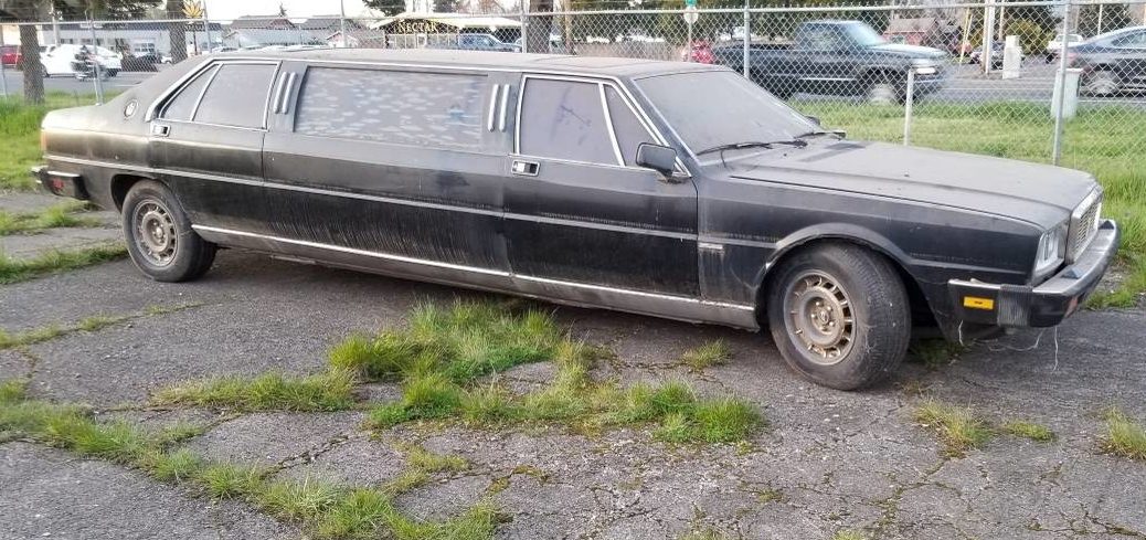 Alternate theory, since the seller says he has California license plates for it, it began life in livery service in Los Angeles. It may have some Hollywood history dropping producer types at the red carpet on Oscar night. After a couple years as a top tier ride it aged downscale working b-list Hollywood, comedy clubs, MTV awards until finally it got too tatty, unreliable and expensive to maintain, drive or even park in dead storage. Now a millstone, some LA dropouts, surfer-stoners, or other vehicular nonconformist freaks road trip it north with visions of lower cost of living, and perhaps plans for a marijuana grow operation or craft beer enterprise. Once in Oregon the big Eye-tal-yen has fulfilled its purpose as escape pod. Once again the millstone, it exists on the cusp between ridicule and unicorn awaiting rediscovery, full appreciation of its unique history and perhaps preservation so that future generations will know just how truely ridiculous their ancestors were.