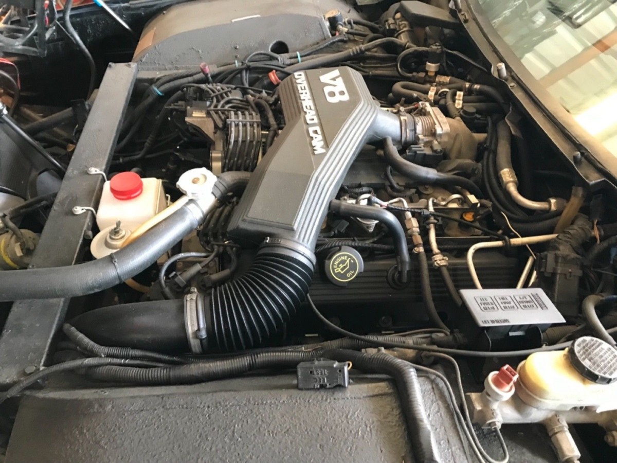 Says it all really, the engine swap has killed the value. Cars like this aren’t ‘my only car,’ daily drivers anyway. Lamborghini Espadas or Ferrari 330s with SBCs are similarly worth little.The Aston V8s are reliable and tough. It would have made more sense to drop the Ford V8 engine management on the existing Aston V8.