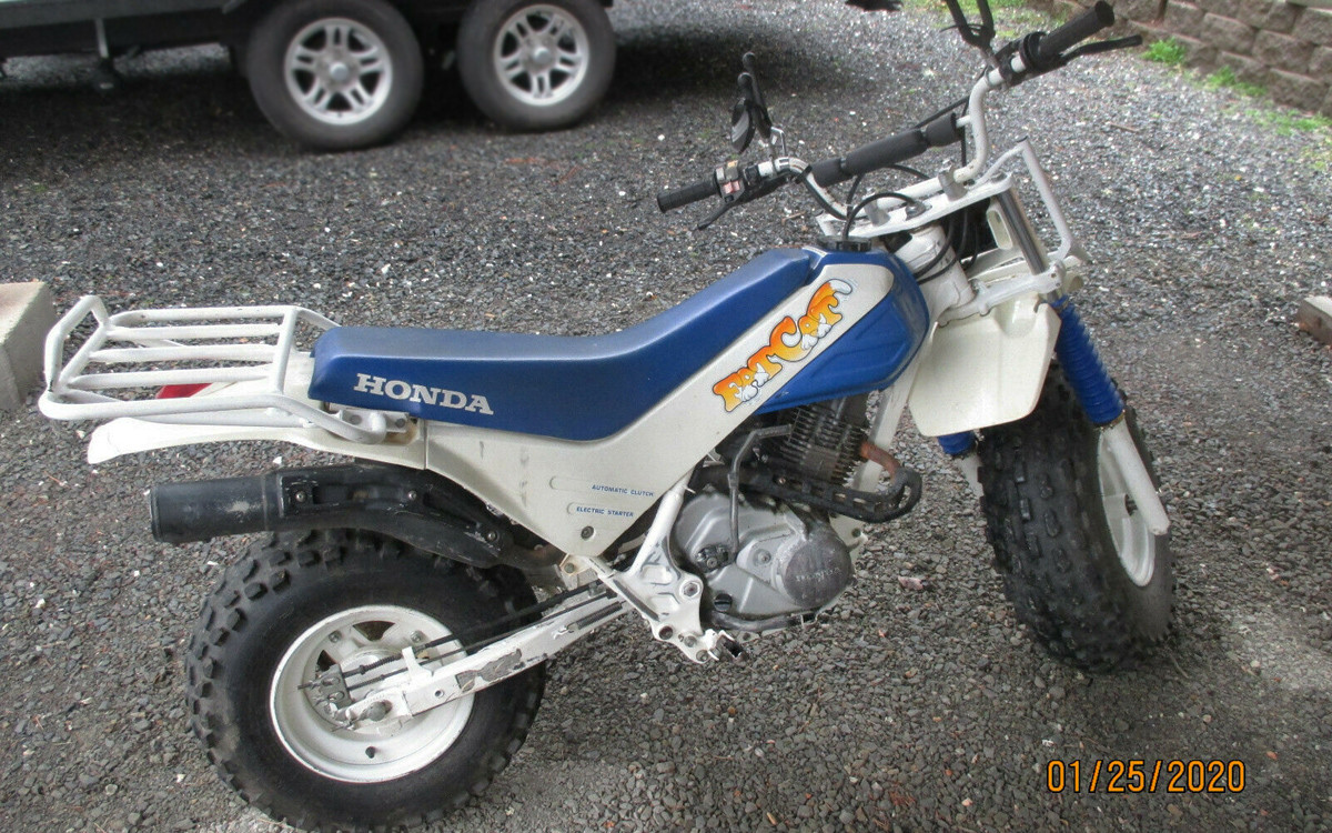 The engine is Honda’s 199 cc four-stroke, two-valve single and the seller says that it starts easy and runs strong. It shifts through the gears great and there are no weird noises or smoke. Have any of you owned a fat-tire two-wheeler like a Honda TR200 Fat Cat or Yamaha BW200?