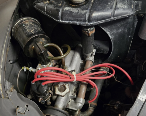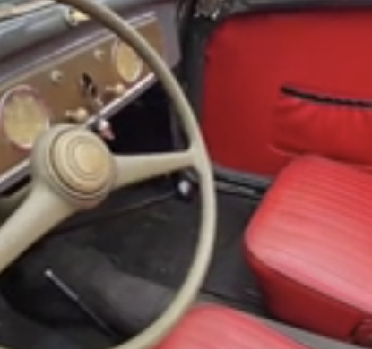 The Topolino was produced beginning in 1936 in three series. The A and B series are distinguished by an “airflow” grille – a design allowed by the location of the radiator behind a sidevalve engine. In 1950 or so, the engine was reconfigured to an overhead valve type, requiring enhanced cooling and a taller bonnet. The 569 cc four-cylinder produced about 16 bhp in this later iteration – up from 13 bhp when the “little mouse” first appeared – with gear changes handled by a four-speed manual driving the rear wheels. Top speed came in at about 55 mph. The Topolino’s configuration would be flipped entirely in 1955, when the Fiat 500 and 600 were built as rear-engined, rear-wheel drive commuters. This example runs and drives; an embedded video provides a demonstration of the engine idling.