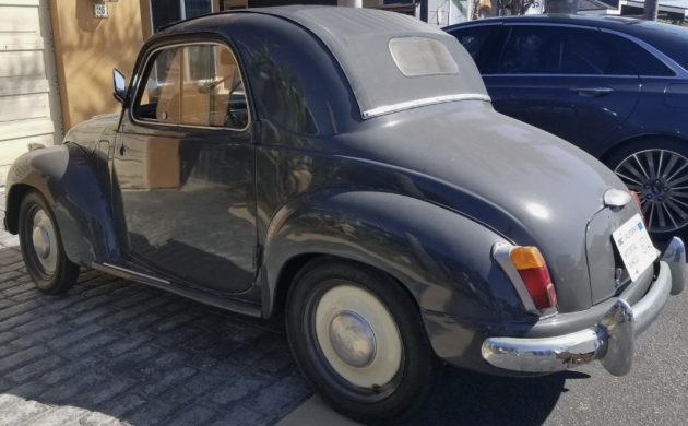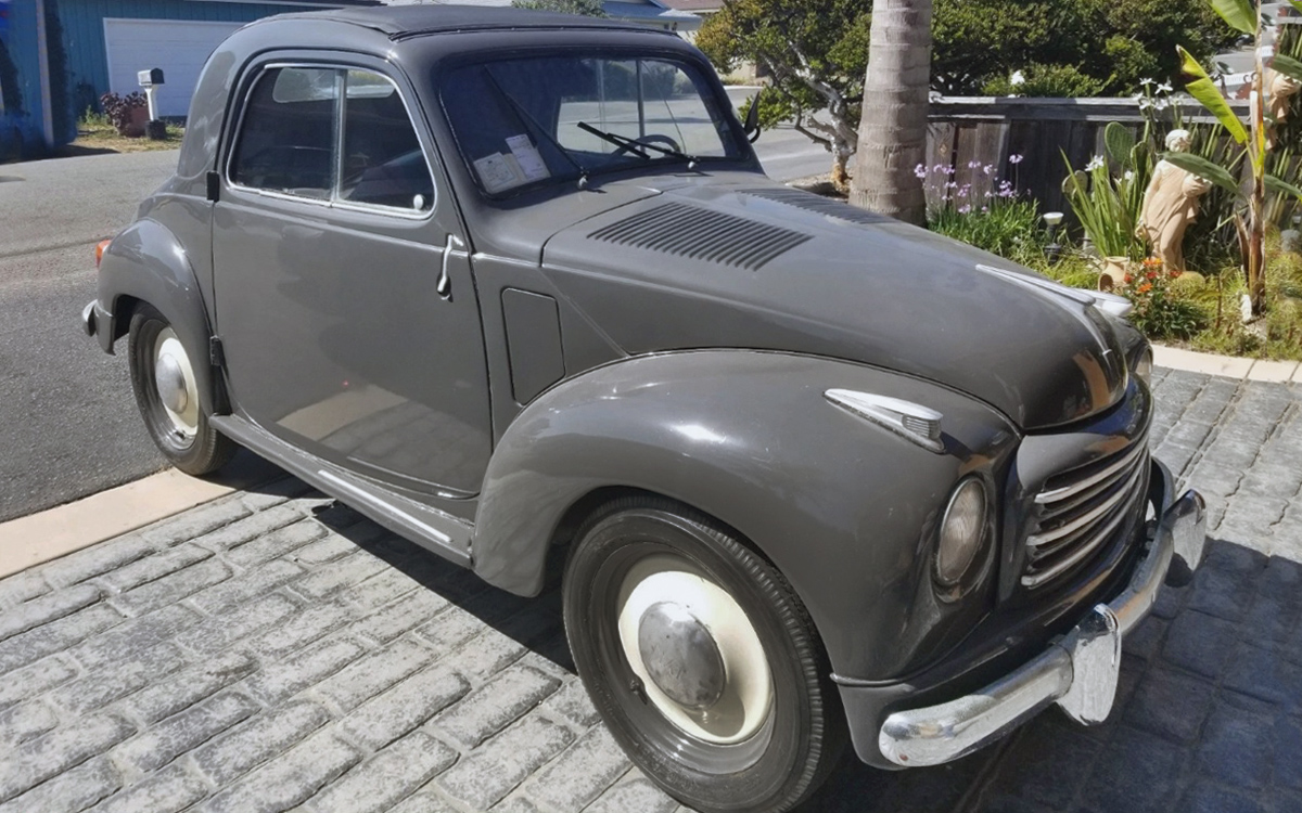How appropriate that this Fiat Topolino – aka “little mouse” – is grey, like the tiny critters occasionally found in my grain tubs. But the car wasn’t named after just any old rodent – “Topolino” was the Italian name given to Disney’s Mickey Mouse character starting in 1932, when a comic book featuring Mickey was published in Florence by Mario Nerbini. Nerbini specialized in literature focusing on the lighter side of life, eventually including the adventures of several Disney characters. This Fiat has certainly seen its own adventures, from its beginnings with its first owner in Sicily to its importation to California, and now the quest for a new owner. Find it here on eBay, looking for a bid of $16,000 or offer to start. The car is located in Cayucos, California. Thanks so much to Araknid78 for the wonderful tip!