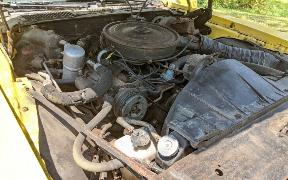 At first glance, the interior doesn’t look too bad, but the ad says it needs a lot of attention. Apparently some critters have invaded over the years of storage and made a few homes along the way. The all-black interior is really striking against the bright yellow exterior. The seller says the odometer reads 42,000 miles and to their knowledge, it hasn’t turned over past 100K. Hopefully, it won’t take too much work to get the cockpit cleaned up.