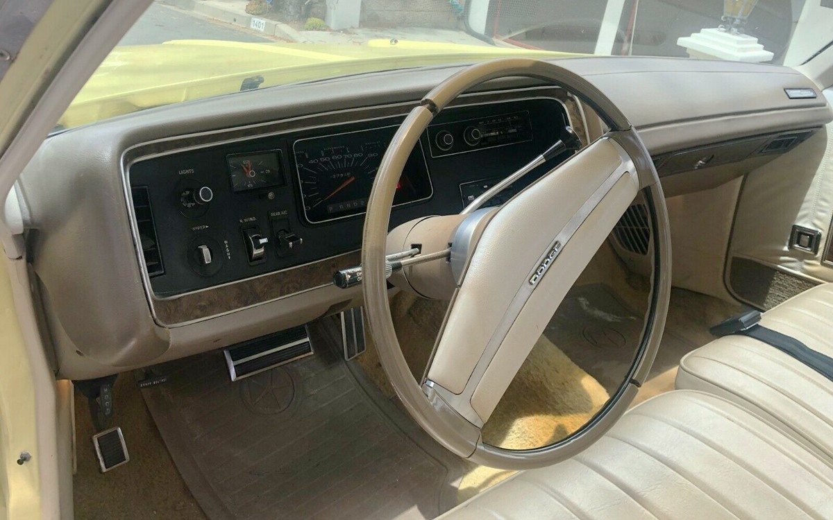 1973 was the last year of the second-generation Dodge Monaco, the last year of the fuselage style with a bit of extra styling thrown in. Not to mention, a bit of length due to federal bumper safety standards so the huge front bumper guards add several inches to the already long cars. In case you were wondering, the hidden headlights seem to be opening and closing correctly. The seller hasn’t put the roof trim on yet and they’re wondering if the woodgrain should go back on or not. Would you redo the woodgrain on this car?