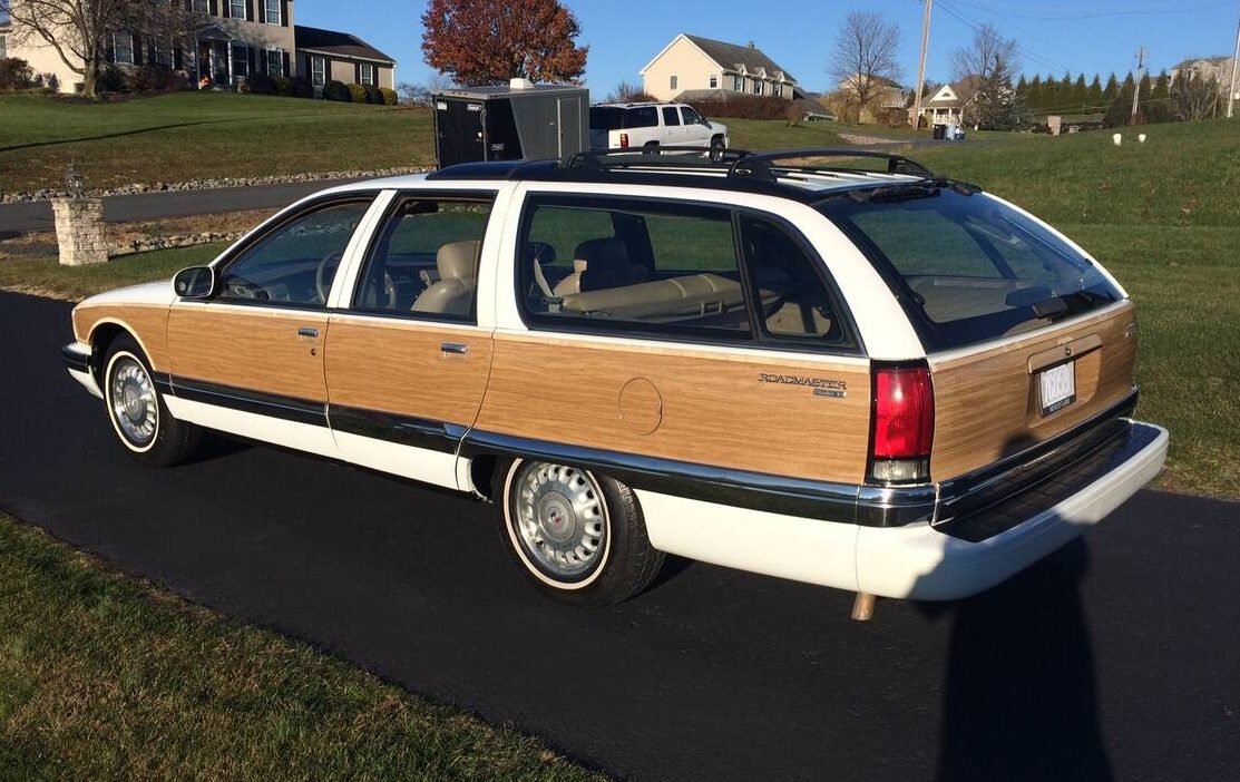 The Roadmaster and its siblings from across the GM lineup were one of the few vehicles that could pull off woodgrain body cladding. While it’s entirely subjective, I feel like white paint with the wood trim is the most handsome combination, and even with higher miles, the bodywork on this Roadmaster appears to be in excellent condition. The details are right, too, with OEM hubcaps still shining nicely and trim pieces like the factory roof rack still fastened to the roof. The wide expanses of glass make the interior a very airy place on these estate wagons, and the rear-facing third-row seat is an enjoyable place to be.