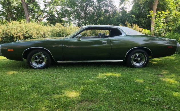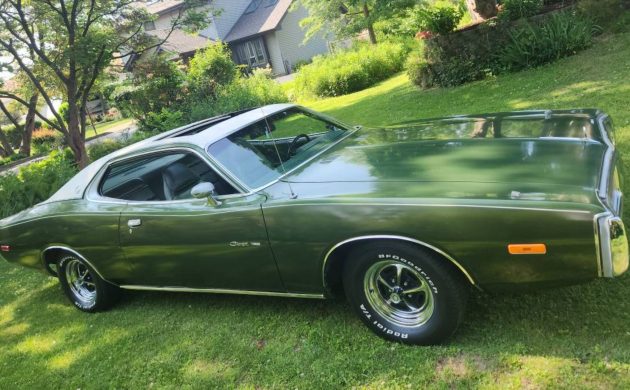 With its long roofline, formal Halo vinyl top, and factory crank sunroof, this 1973 Dodge Charger SE represents the luxury-leaning side of Mopar’s early-‘70s lineup. Finished in green over a matching green interior, this well-documented survivor is highly optioned and well-loved. It’s listed here on craigslist and located in Homewood, Illinois.