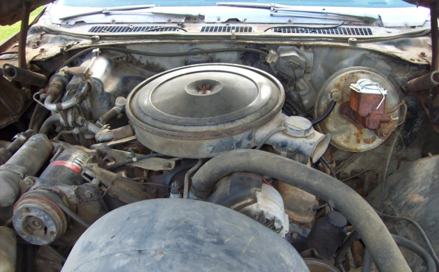 If the odometer reading of 41,000 is accurate, then this car has sat somewhere for years, maybe decades. And out in the Sun, given how well the green paint has been baked. A vinyl top was likely there at one time and has been peeled off or simply flaked away. The interior is grungy, and cleaning it will only partially help. New upholstery and carpeting will be required. For some reason, the wheel covers don’t seem right to me, and they look like ones from 1968 (Pontiac experts, feel free to chime in).