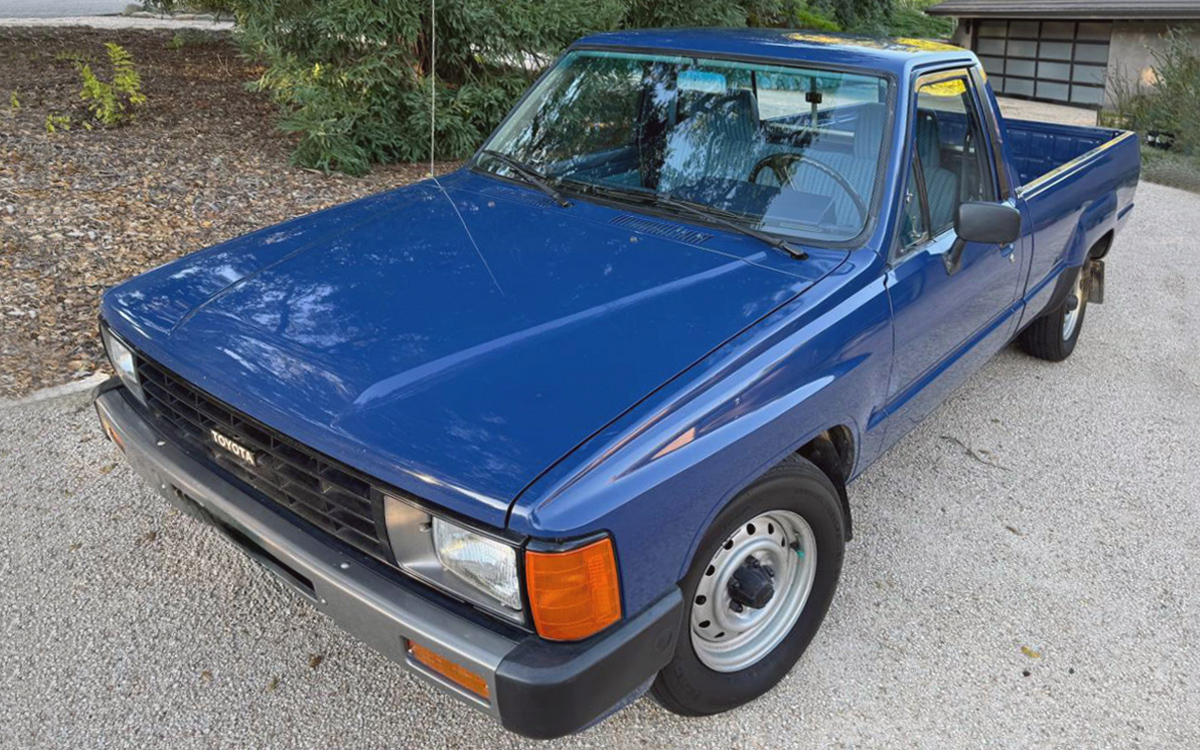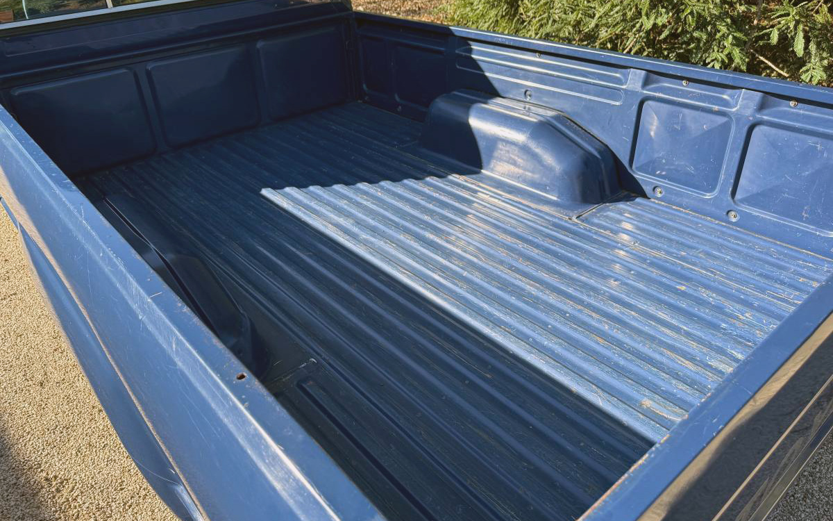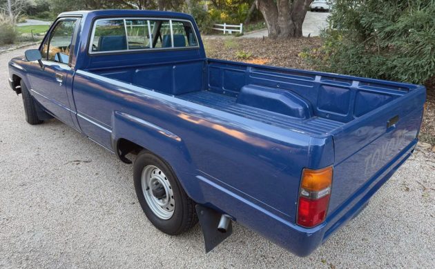 The bed looks a little dull here for some reason; maybe it needs a cut-and-buff or something. The seller says this fourth-generation Toyota pickup is wearing its original paint, so this must just be 40-year-old paint that’s been treated to the California sun for four decades. They made this generation of the Hilux, or plain ol’ pickup, as they were known here, from August of 1983 for the 1984 model year until the end of 1988. Here’s a photo showing inside the bed. I think the price is a bit on the high side, given how used the bed looks and the scratches on the exterior.