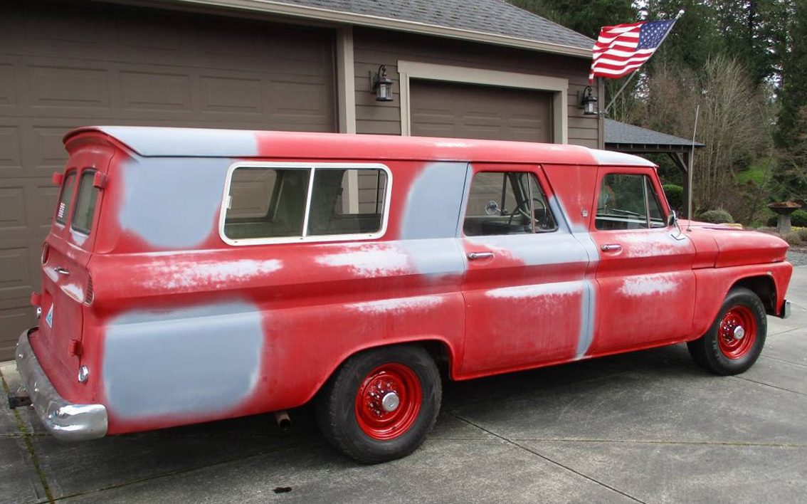 UPDATE – We featured this 1964 GMC Suburban last spring and since then it’s been somewhat updated and has had a lot of maintenance and bodywork done on it. It’s for sale again here on craigslist in Kelso, Oregon Washington with a higher asking price of $9,500. Check out the new listing to see all of the work that has been done. Thanks to Andria A. for sending in this updated tip! Here is the listing in case the ad goes away.