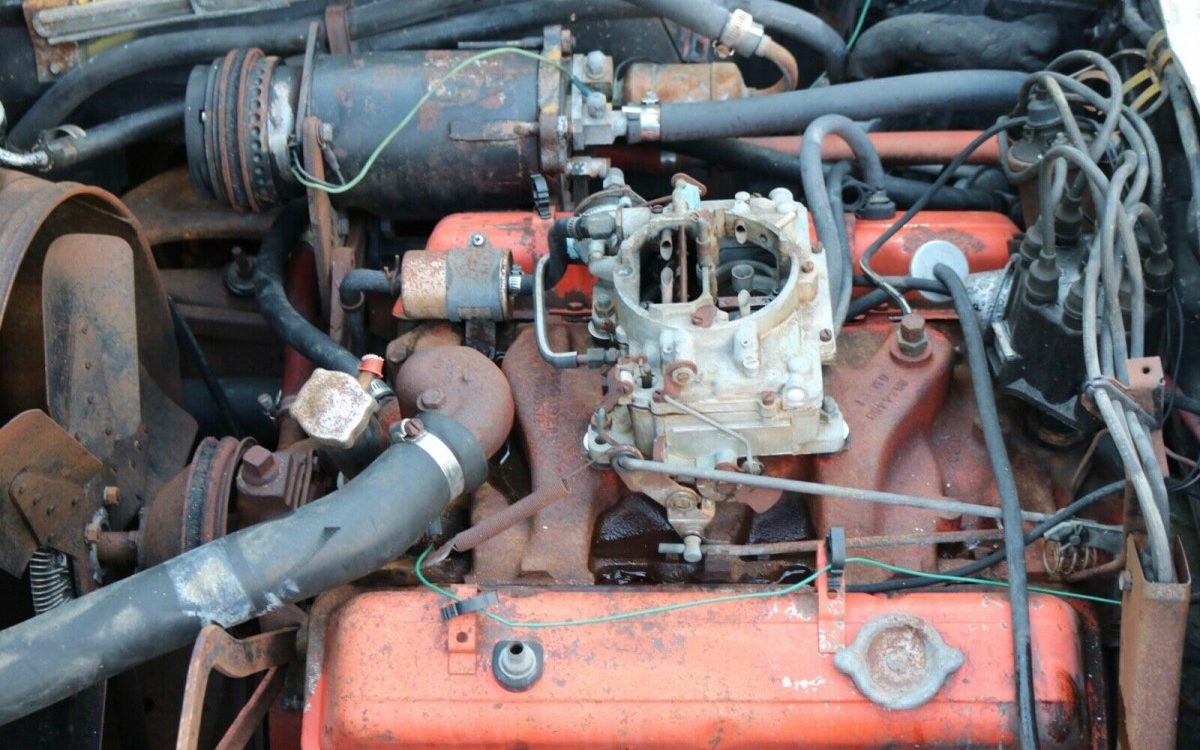 The air conditioning adds interest, though nothing’s pledged to work on this long-forgotten classic. Liquid on the intake manifold suggests either a failed (and ill-advised) attempt at starting the engine or remnants of a power washing. While the headlight motors and brackets have gone missing, that seems to be the extent of scavenging by parts-hungry hyenas.