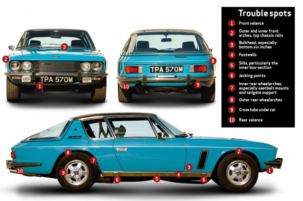This rust problem location diagram comes from a great Interceptor buyers guide courtesy of Classic & Sportscar. You’ll notice there’s not a lot of the car that isn’t listed! I recommend reading the buyers guide closely if you’re considering purchasing one of these interesting cars.