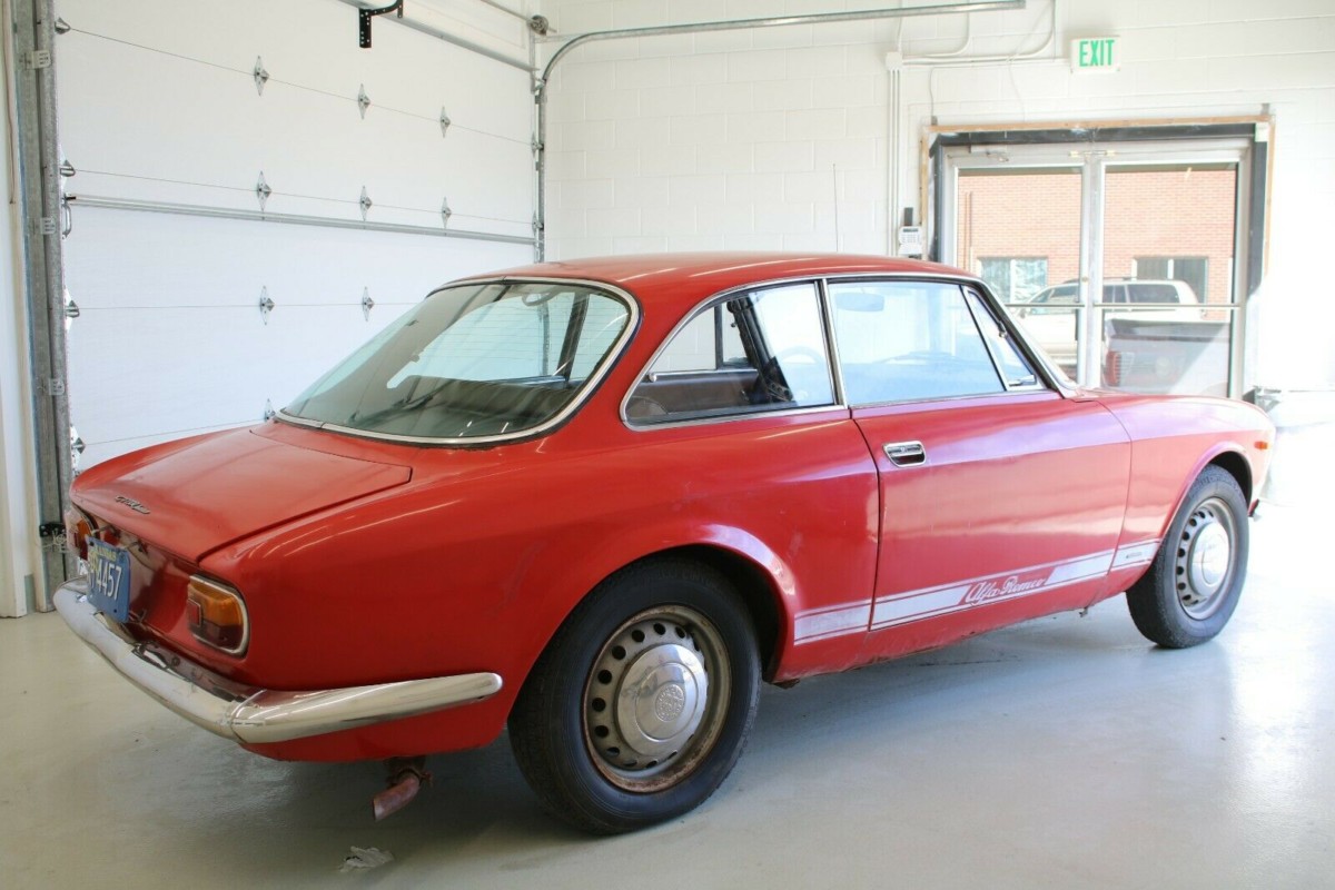 Right off the bat, you can see how original this Alfa remains outside of its engine. The matching hubcaps over steel wheels, chrome bumpers, and period graphics on the lower doors and sills are all strong indicators this car hasn’t been messed with. You always wonder if the long-term storage in a “collection” was a targeted attempt to preserve what someone believed would be a future collector car, or just a project car kept in storage that ended up being preserved for the long-haul because the engine swap project was never completed. I say that because while the larger 2000cc Spica engine from a later 105 Coupe is with the Alfa, it’s not hooked up.