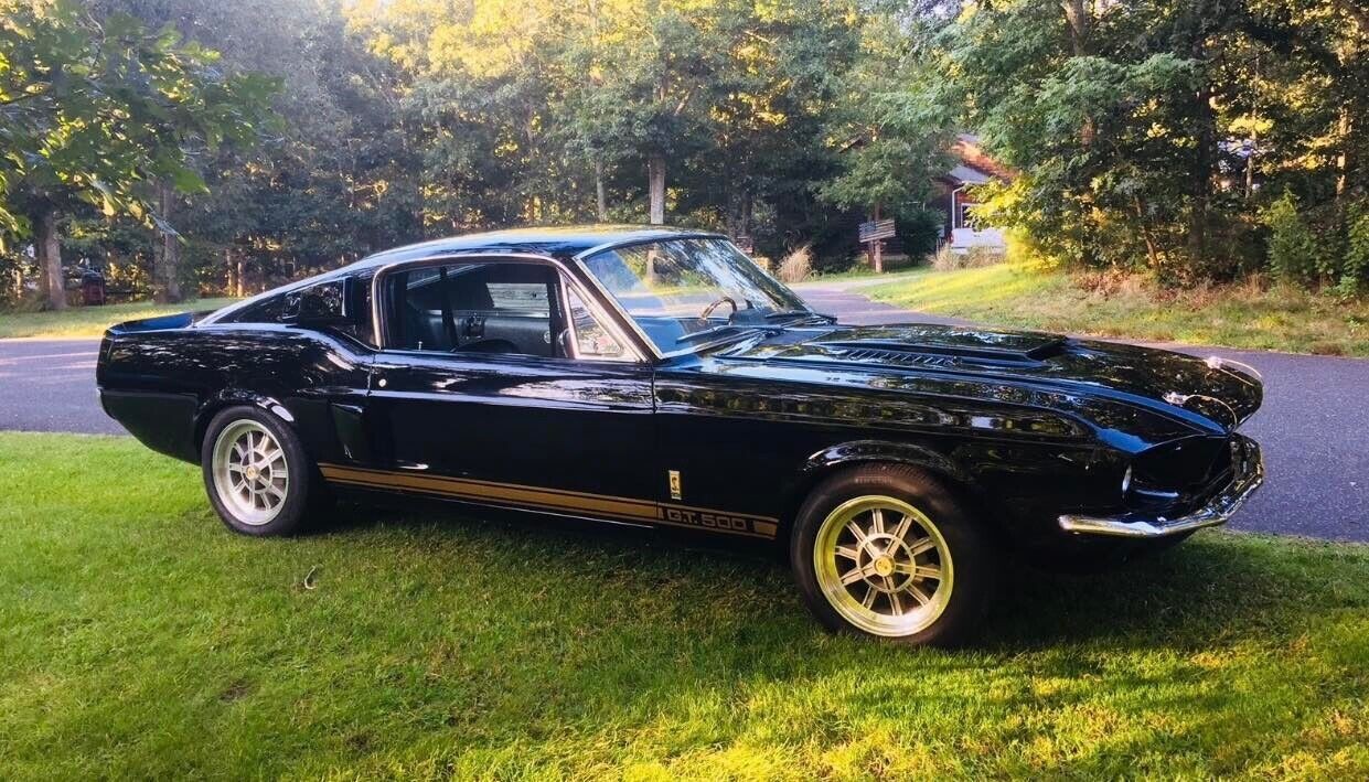 The GT500 joined the Shelby Mustang range in 1967, and while many resources quote a build total of 2,048 cars, that figure is based on Fastback production. There were also solitary examples of the Coupe and Convertible built, pushing the number to 2,050. The owner admits this Shelby has led what can literally be considered a colorful life. It rolled off the line dressed in Lime Gold, but a previous owner performed a color change to Candy Apple Red. That wasn’t to the seller’s taste, so they had the body soda blasted before applying Blue. The new paint deteriorated due to some form of interaction with the soda. The exterior was hand-sanded to bare metal before the current Raven Black was laid on the laser-straight panels. It has received minor touch-ups due to stone chips but presents superbly. The Raven Black reflects its surroundings like a mirror, while the contrasting Gold stripes look crisp and sharp. The seller had the underside refinished in Red oxide using an epoxy base for longevity, allowing this gem to remain rust-free. Many original trim pieces made the rewarding trip to the platers, and the original glass is excellent. The existing ten-spoke wheels are 15″ reproductions, and the seller switched the headlights from outboard to inboard units. However, they include the original assemblies for those preferring a stock appearance.