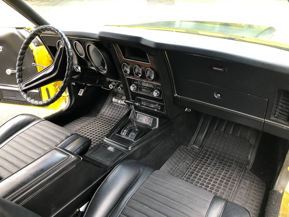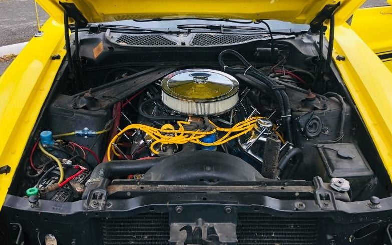The Medium Bright Yellow Mustang presents extremely nicely, although the owner goes to some trouble to point out that it isn’t perfect. He says that the paint has a number of chips and marks, all of which would be typical on a classic of this age. He also mentions the fact that there is rust in the rear quarter panels, although once again, this isn’t visible in the photos. He doesn’t mention any other rust issues, which is quite reassuring. The panels appear to be straight with no apparent dings or dents. The panel gaps are as tight and consistent as you are likely to find in a Mustang, while the stripes and decals are in good order. The vehicle also features a front and rear spoiler, along with a louver on the rear window. These all appear to be in excellent condition, as does the trim and glass. The Mach 1 rolls on a shiny set of Magnum 500 wheels, and these have been wrapped in a set of BF Goodrich tires that have little wear.