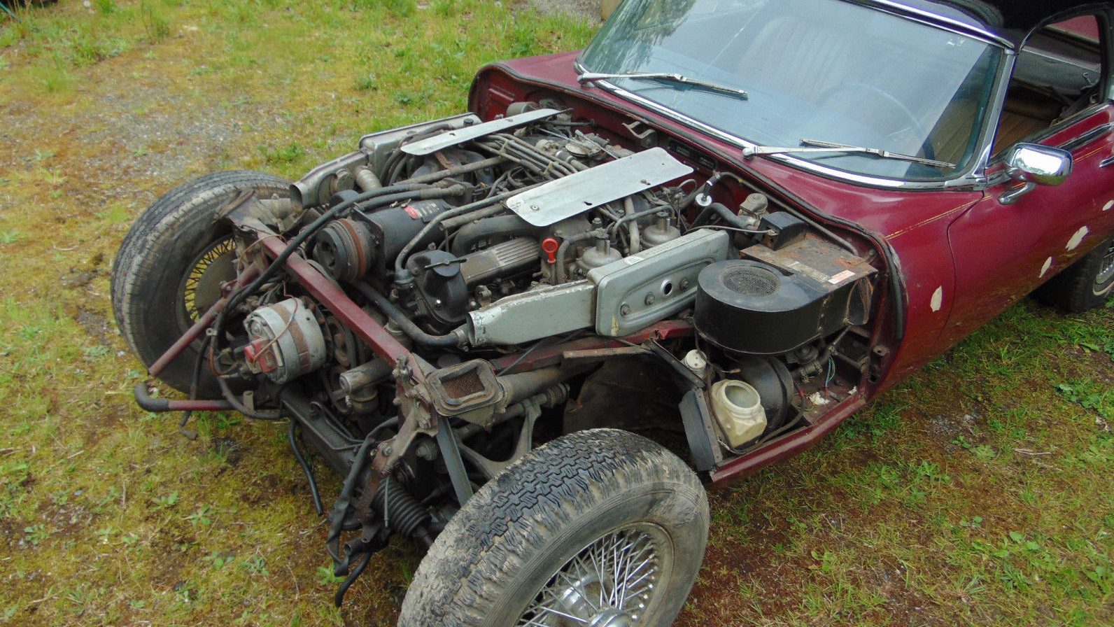 Not much is offered in terms of running condition, or why the E-Type comes with a Washington State “Auto Dismantlers” bill of sale. I’m sure an accident is what took the E-Type off the road at such a young age, but how bad was it? Was the frame affected or just the nose (hence the green hood)? I’d like to know more about the original paint codes as well, as the deep pink it currently wears doesn’t seem like a factory color but it does match in the door jambs and those oil change stickers have been there a while. The automatic’s a bummer, for sure.
