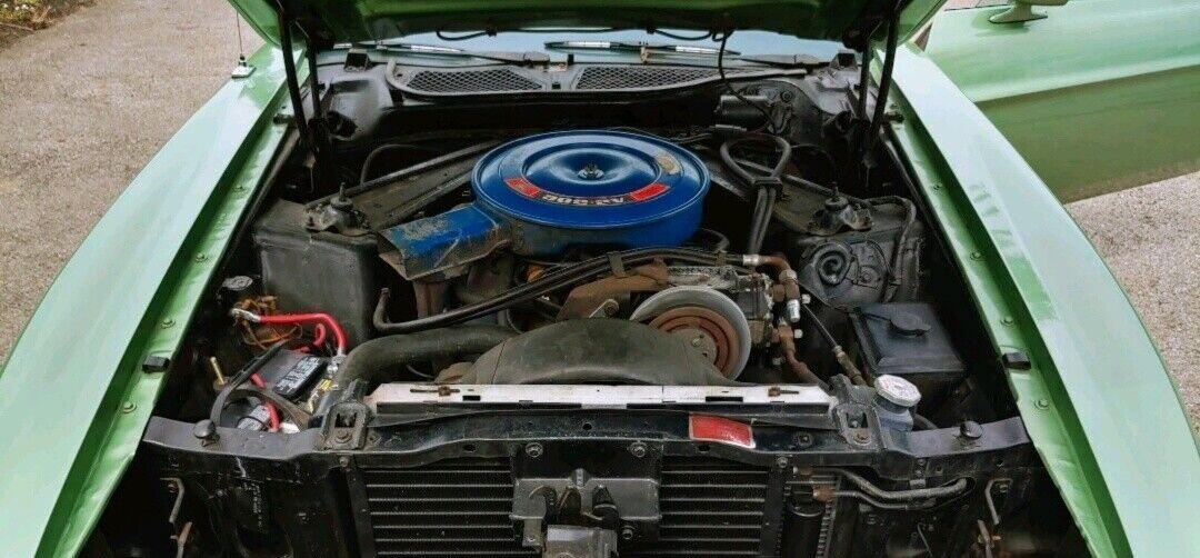 It’s just a basic Mustang, though well-equipped. And it’s not from a particularly loved model year. And it’s a coupe. And it has the boring whitewalls/ wheel covers. And it is green. But it does have period-correct patterned cloth upholstery.