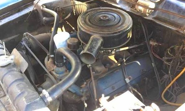 Things look mostly original under the hood. That bundle of stray wires may need attention. That’s a 180 horsepower 259 CID V8 with a 3 speed manual with overdrive. It isn’t a performance engine by any means, but it could still be fun.