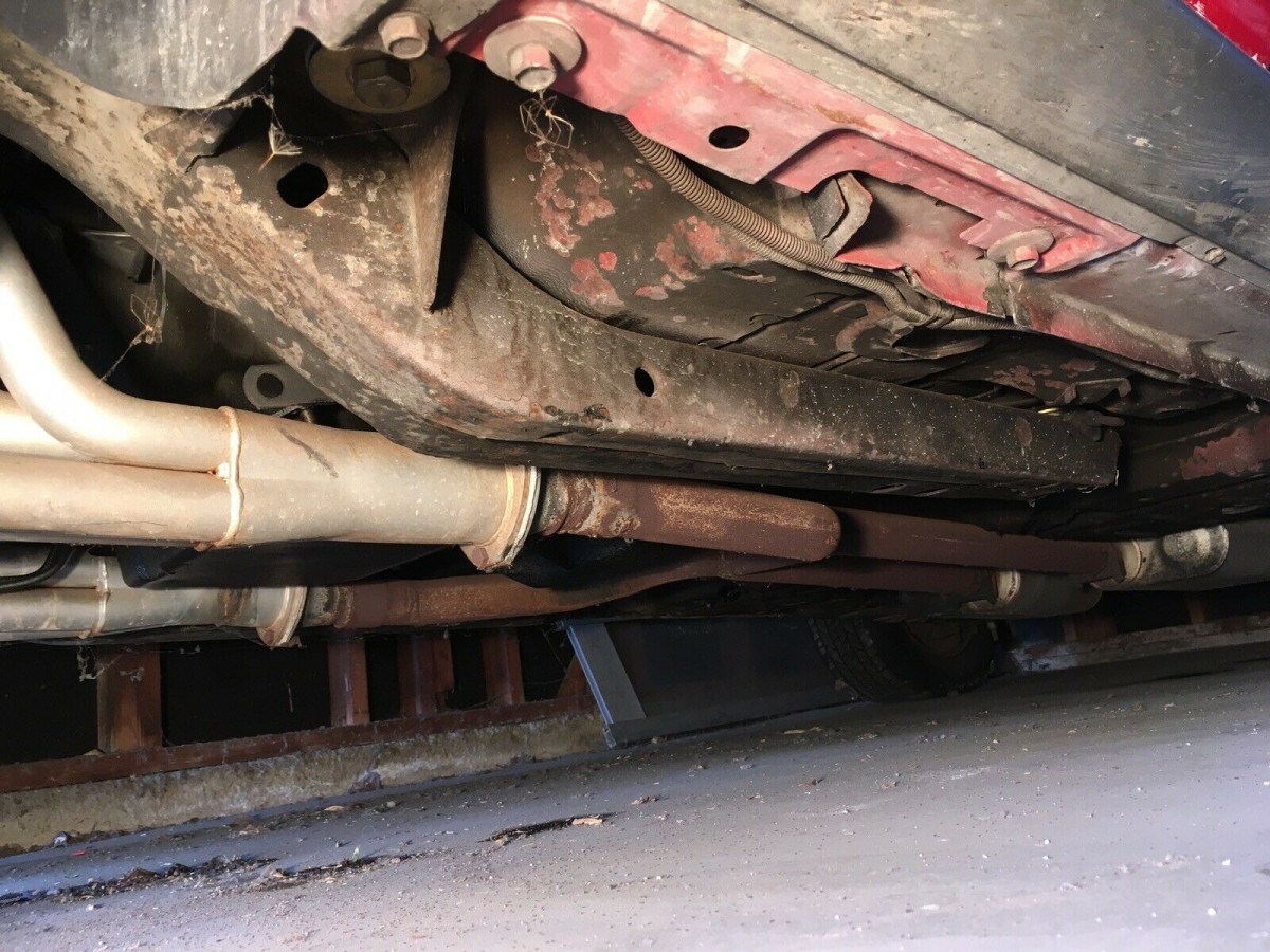 The only spot with more than surface rust is under the black vinyl top. While some thought they looked cool, vinyl tops were a horrible idea when it came to preserving cars. This one looks like the top could be stripped off, repaired, and replaced with little fuss. A look underneath shows very little corrosion as well. The condition of the car is certainly that of a car in a forgiving climate.