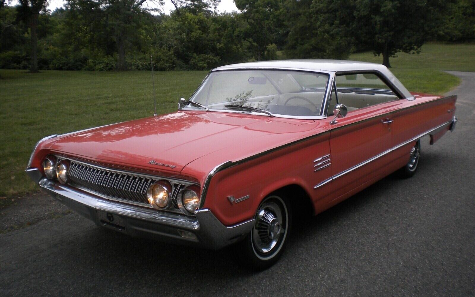 In 1985 I bought a Pacific Blue ’64 Monterey fastback coupe from the original owner. I was 16.130,000 miles on the 390 Marauder engine. Mercury was all over the place with their naming. For the ’63 1/2 fastbacks, they were Mercury Marauders, full stop. In ’64, the engines were Marauder engines, hence the cool flag and badge on the fender. So you really just bought whichever model with a 390 Marauder or a 427 Super Marauder. No sixes or 289’s in full size Mercuries. Mine was a 266 hp 2bbl 390 Marauder with a Merc-O-Matic.