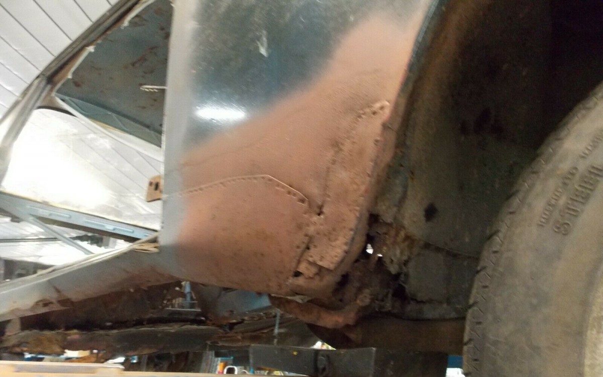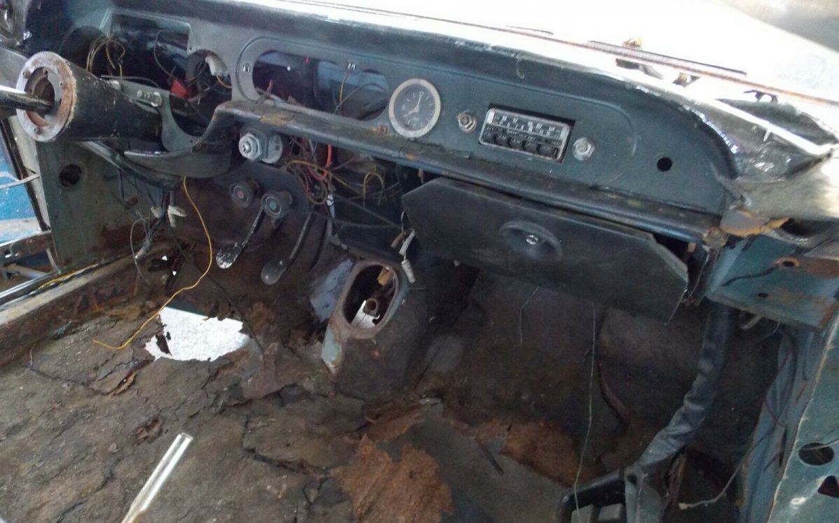 The listing claims, “Will need rust repair to floors. Body can be saved but needs the front half of the floor replaced” Looking at the images closely, it appears that it’s going to need a lot more than just floor repair work. The rust-through is extensive, the quarters have been repaired with welded patches but the rot still persists and is beyond body panel damage, there is plenty of rocker panel and inner fender damage too. There’s also no hood, doors, or trunk lid. As to all of the missing components, like the previously mentioned headlights, there’s no word as to their whereabouts.