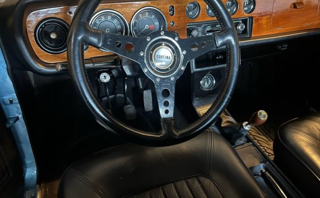 My Dad had a ’68 Cortina GT. I learned to drive a stick shift in it. Awesome little car. But by ’73 it had rotted away. $23k is a little rich for this more door. But where will you find another one?
