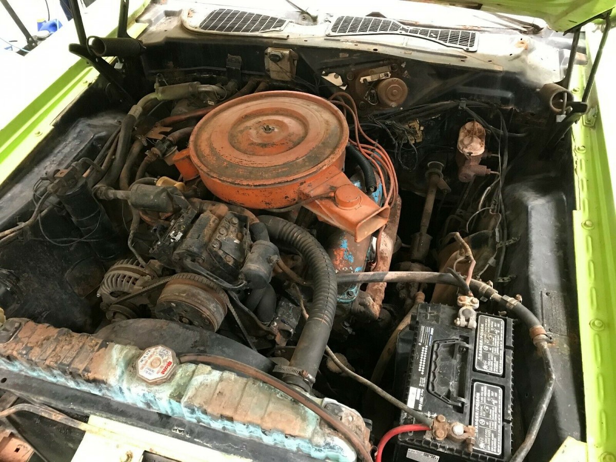 Better idea, kill the vinyl roof, rid yourself of the ugly color, find a standard hood and leave your 14 year old selfs need for that ugly monstosity behind, THEN go through the 318 to make it run up to standard specls and drive. Oh yes, need some magnums, if ya want to mix it up, be a bad boy and put on all chrome 1968 models.