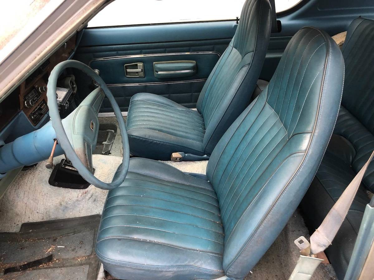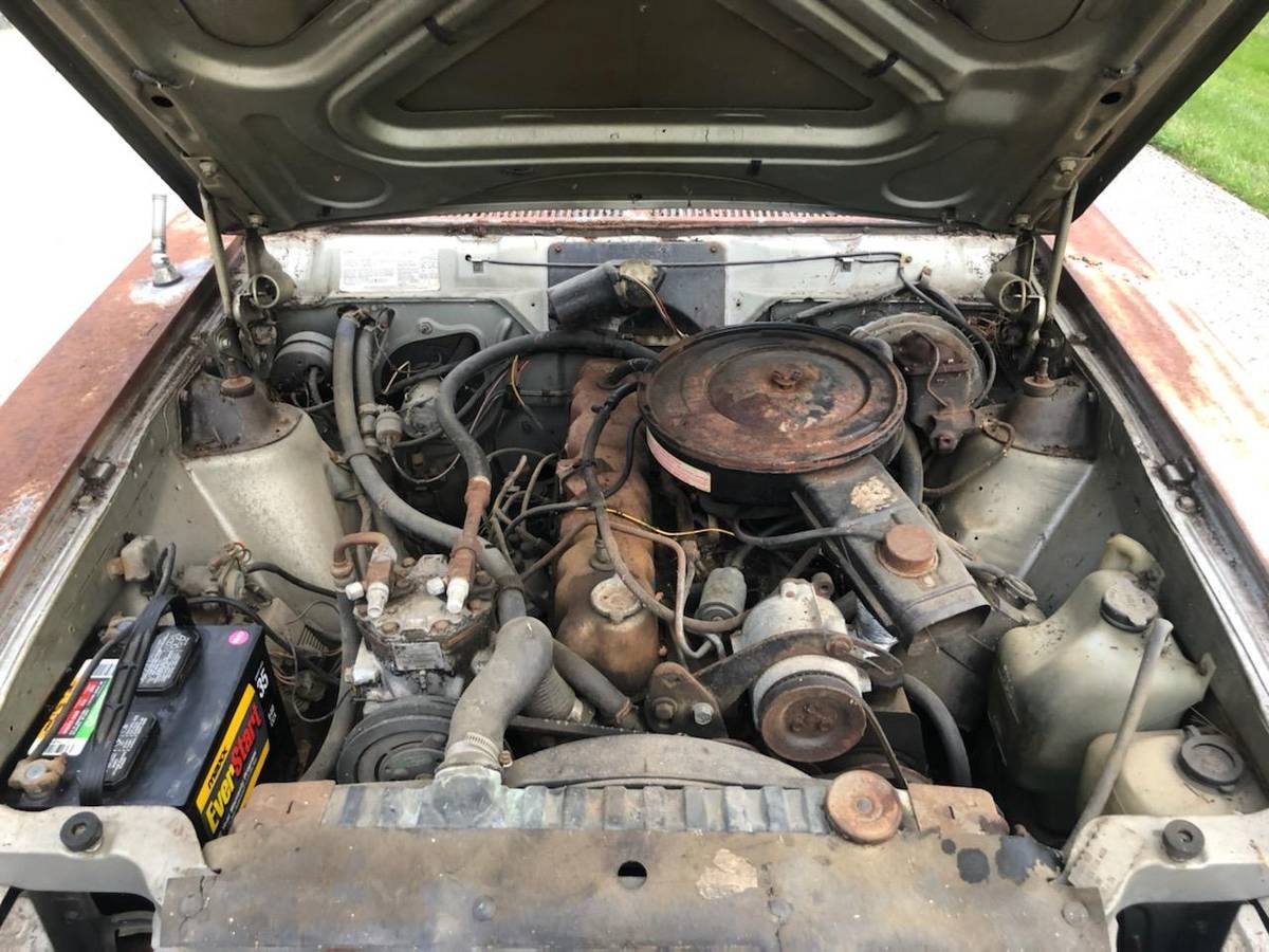 The interior is pretty well-worn, although the upholstery looks to be intact. However, all the carpeting will need replacing including that in the hatch area. The headliner is suspect, as well. The car has factory A/C, but there is no mention if it functions. It likely does not as the motor turns but doesn’t run, indicating a long-dormant vehicle. We’re guessing the motor is the AMC 258 cubic inch six mated with an automatic transmission. We’re told the car has 60,000 miles on it, which is possible if it’s been off the road awhile. The North Carolina plate looks like it’s been on there forever.