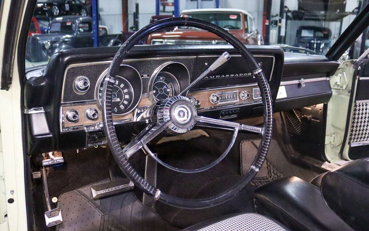 I’m SO glad that they didn’t put dual exhaust sticking out under the rear bumper six inches, though. Sporty wheels are one thing but let’s not go overboard. The 1965 and 1966 Ambassadors are my favorites, the ’66 in particular. The 1965 models were still known as Ramblers and they had a wraparound rear window. The 1966 cars are AMC Ambassadors without a Rambler name anywhere, and the rear window is square and more modern looking. This car is the top-trim DPL version, too, an added bonus.