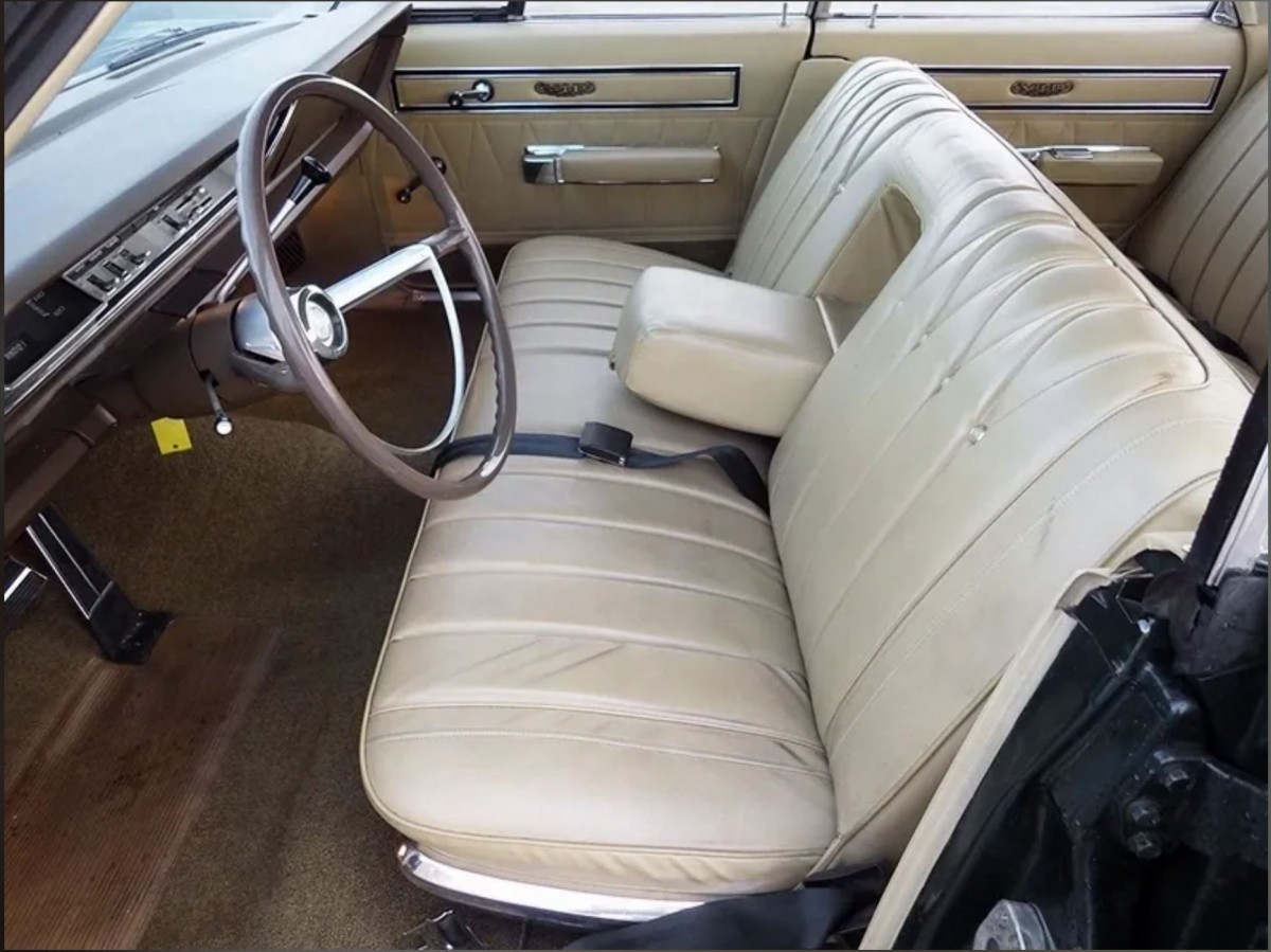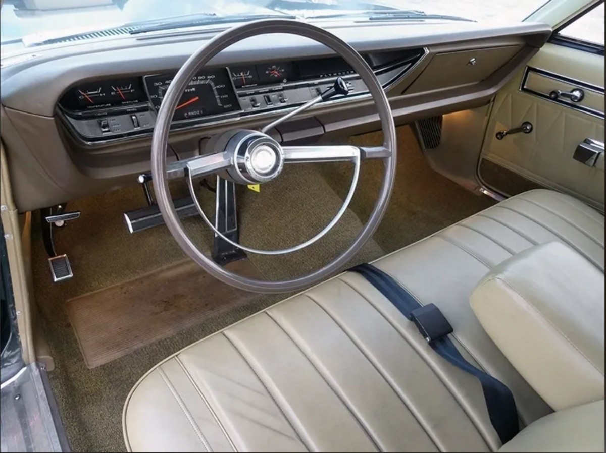 This green one is a lovely sled. The wheel covers surely look like optional 15″ wheels which meant rare disc brakes. Confusing with so few other options, hmmm. I had electric blue metallic 68 VIP for 15 years, 200,000 miles. Rare model, maybe 7800/year compared to 300,000 various Fury Models. Plymouth was sold with Chrysler, easy upgrade the top cost Plymouth VIP to a Chrysler Newport. Mine had powerful and thirsty 383 4 barrel. 12 mpgs about max. Quicker 3:23 rear end, dual snorkel air cleaner. Would burn rubber in 2 gears. Ice cold air. Forever my fav car even tho hardtop windows very wind noise prone and power steering always a little leak. Carb liked to “boil” when hot, could be a hard starter, as well as when below zero. Still fav. Modern fuel injection is a wonderful thing!! Young people not familiar with choke, flood, lean, rich, pump the gas, backfire, etc. Carburetors are fussy.