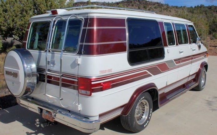 In an era where vehicles from the 80s and early 90s that maintain their in-period appearance are all the rage, this Chevy would fit in nicely at any upcoming Radwood shows. There’s no other era that I can conceive of where installing basketweave-style alloys on a conversion van would fly, and the same goes for fender flares and running boards. The ladder out back is now a hallmark of vintage SUVs used for overlanding purposes, but in a way, the conversion van of the 1980s was the predecessor to the current travel movement.