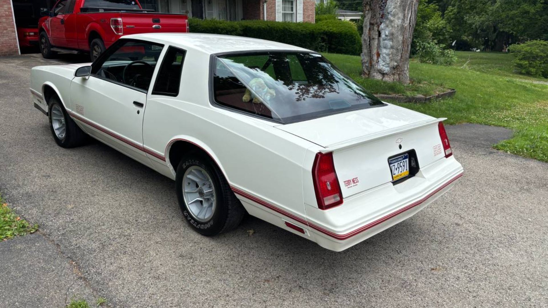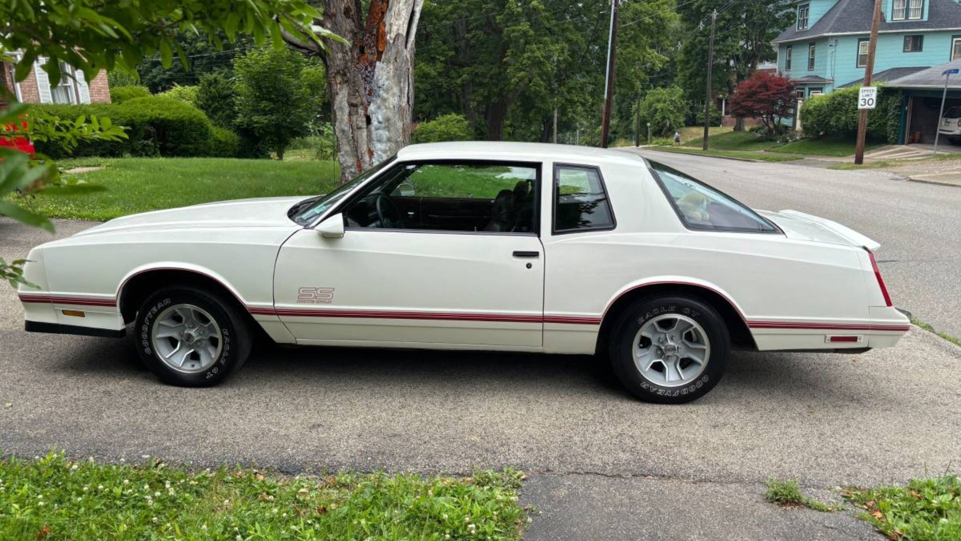 Finished in white with a maroon interior, this SS Aero Coupe still wears its original Goodyear Eagle GT tires and factory 15-inch alloy wheels. It’s powered by the L69 5.0-liter HO V8, which produced 180 horsepower and 225 lb-ft of torque—modest by today’s standards but still respectable in the late ’80s. The engine is paired with a 4-speed automatic overdrive transmission and a 3.73 rear end, which together delivered solid acceleration and relaxed highway cruising.
