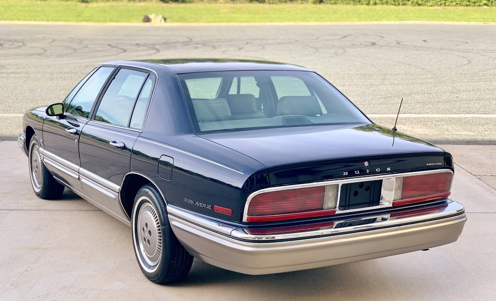 Part of GM’s C platform, the Park Avenue was clearly marketed to older drivers that placed a great deal of emphasis on comfort and isolation from the road beneath them. This is not the kind of car you buy if you seek driving dynamics that reward you in any way; if you do, and must own a supercharged Buick, the Regal is a much better bet. But if a supercharged mill in a luxo-barge cruiser is more your speed, than your ship has some in with this clean Park Avenue. The two-tone paint job presents well at every corner, as does the chrome trim atop the bumpers.