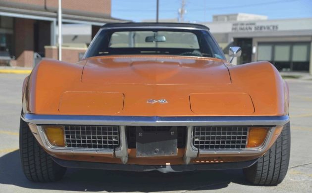 The exterior is finished in orange, a color that suits the dramatic body lines of the C3 Corvette particularly well. The long hood, flared fenders, and muscular proportions remain some of the most recognizable shapes Chevrolet ever produced. While condition details beyond mileage and originality are limited, the low odometer reading and clean title suggest a car that has been preserved rather than heavily modified or raced.