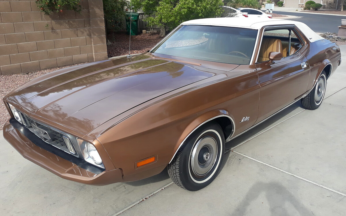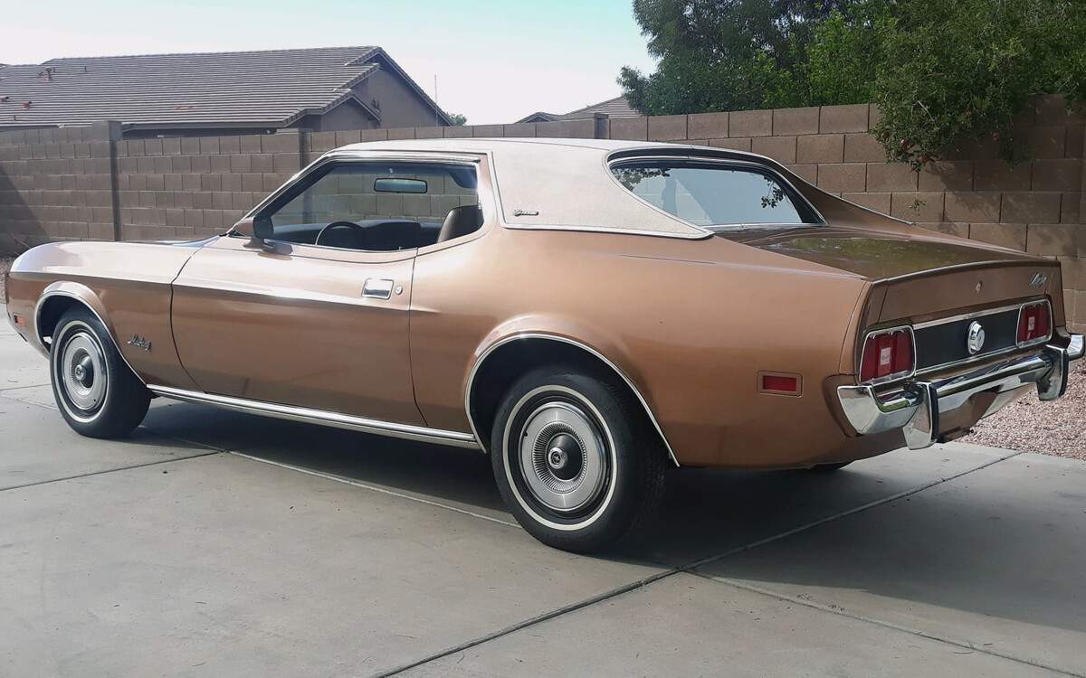My very 1st Mustang, 1973 Grande with the 351C 2V, auto, same as this car, color combo, 129 mph top many times, never 130. I was 17 yrs old, it was a great car to grow up with. My Dad owned a body shop. We added the ram air hood, rear wing spoiler and front lower spoiler, added duel exhaust, added 60 series tires on 8” E/T rims. Changed the color. Did Mach 1 stripping. Car looked awesome.