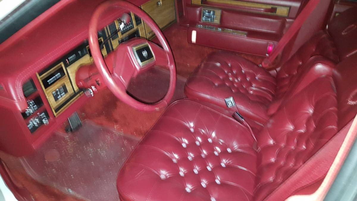 I had a couple of these over the years, an ’85 like this, burgundy in & out with the velour seats & moonroof (very elegant looking but underpowered & rather unreliable with that 4.1 turf of an engine), an ’84 in firethorn red with white leather (same engine, same lack of both power & reliability, yet a less elegant, more pimp-ish appeal) and a 1980 Elegante series, silver over black 2-tone with black leather & a moonroof but a cast iron 368 cubic inch v-8 (4-6-8 engine with the 4-6-8 feature disabled). That was my favorite for both performance & reliability. A little bit of a penalty in gas mileage but REALLY worth it! I am actually not a big fan of this body style, but I like how they ride, they don’t handle bad, & in my neighborhood ya need a Cadillac to blend in lol. Right on the edge of a rather wealthy older subdivision to the west by a mere 4 blocks & a rather “diverse” part of town to both the east & north. No matter which way I go, a Cadillac is credible. Having worked for a hearse and limo dealer in the past, I drove a lot of Cadillacs & really liked them (except the 4.1’s & the Northstars).