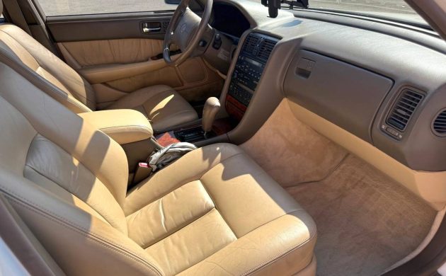 The LS interior is not unlike the W123-era Mercedes (heck, it wouldn’t surprise me of Lexus tore one of those apart in the R&D phase for this model) – it looks good seemingly no matter what or the number of miles on the clock. But in a car that’s been looked after, you can pretty much guarantee the leather surfaces will look like this. The beige interior is likely the most popular color scheme for an LS, and it’s amazing to see virtually no signs of staining or soiling. The seller notes that everything works and that the dashboard is crack-free. The air conditioning has been converted to R134A.