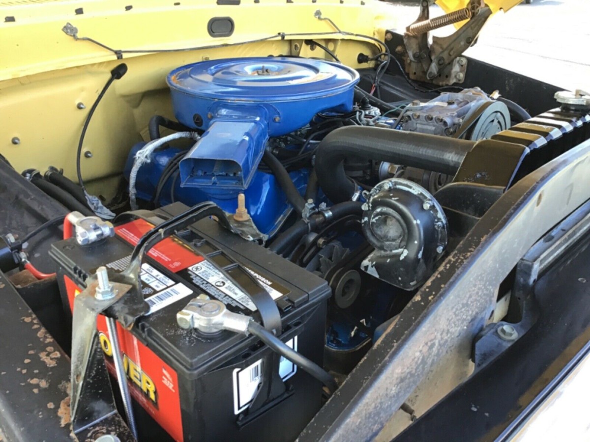 The truck was parked in the family shop or under a carport at all times, which explains the good condition of the paint and an interior that hasn’t been ravaged by the sun. The bench seat shows no tears or splits, and the door jambs reveal matching paint to the exterior. None of the fixtures or door hardware in the jambs have been painted over, speaking to a truck that’s never been painted. The dash wears yellow paint as well, a throwback to an era when interiors sported paint jobs to match the outside. The seller notes all documentation remains with the truck, from owner’s manuals to warranty registration cards. The functional air conditioning was a dealer-installed accessory.