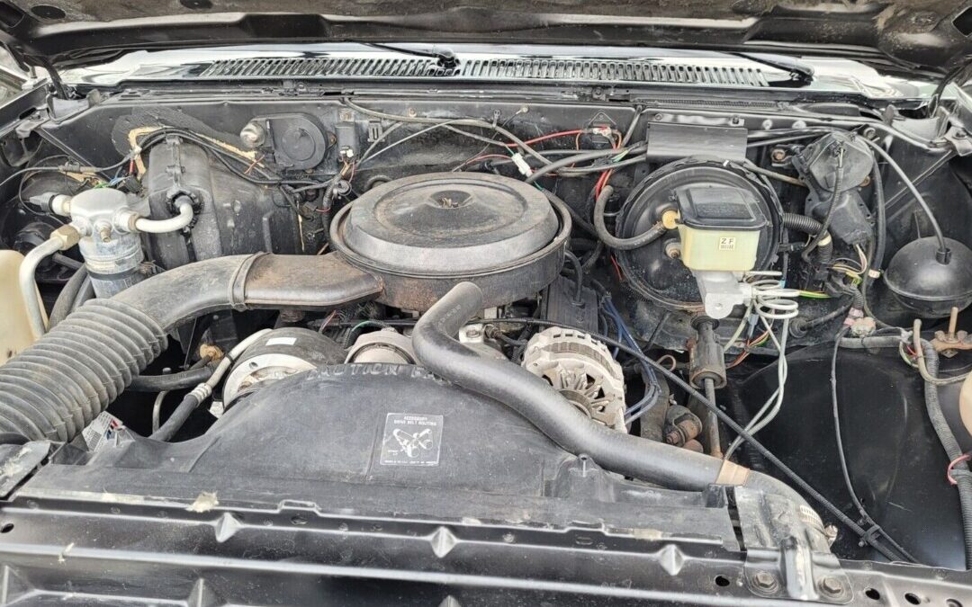 The ubiquitous 350 cid (5.7L) V8 promises a reasonable blend of performance and economy for a vehicle of this vintage, and the lack of cheesy touch-up paint supports the “no rust” claim, if you’re talking about crunchy structural rust. Surface rust visible here would not concern most potential buyers.