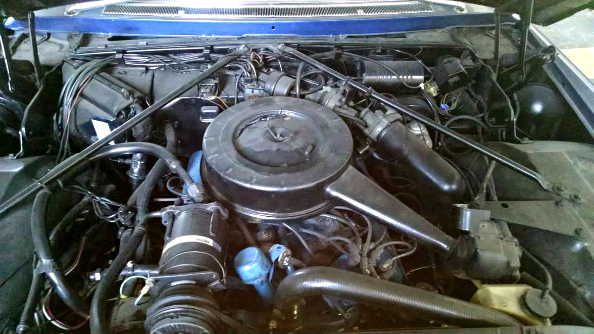 Under the hood of this massive wagon is a 429 V8 with “the works”. Air conditioning, power steering, power brakes, you name it. The engine compartment appears very clean, but the air cleaner sticker is peeling up, and looks to have been sprayed over with black paint. I would assume that the car is in running shape, with no issues to contend with. I would hope so anyways for 1,300 miles worth of use.