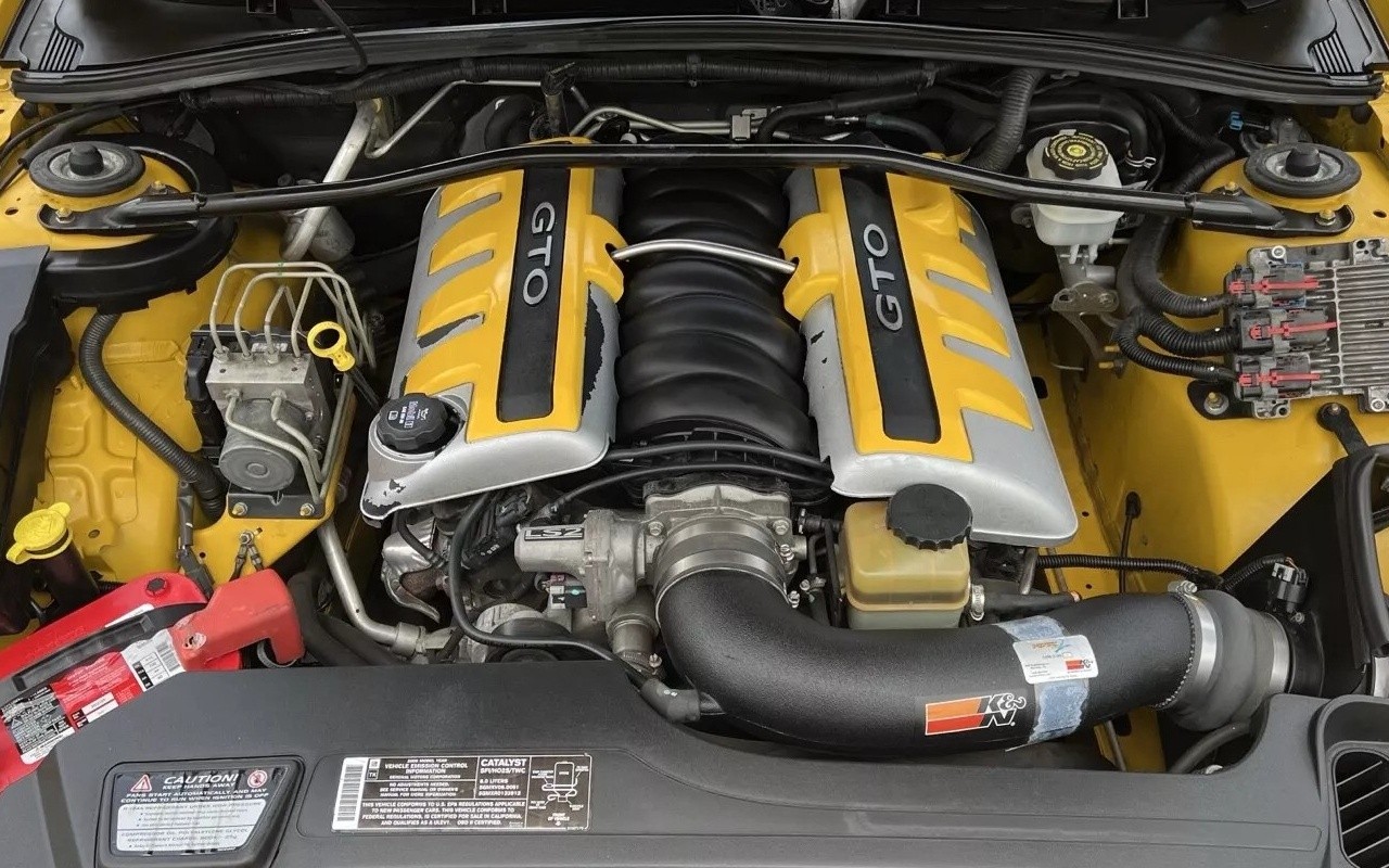 For the 2004 model, the GTO was equipped with a 350 horsepower, 5.7-liter LS1 engine, the same V8 that powered the Chevrolet Corvette at the time. However, buyers who waited until 2005 got the LS2, which increased the size to 6.0 and raised HP to 400, quite a satisfying number for the period. The seller says this car still runs smoothly, plus he confirms it’s always been well-maintained. A 6-speed manual transmission was available, although a 4-speed automatic takes care of shifting duties here.