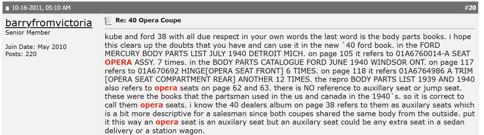 From one of my favorite dealers in Portland, Oregon, comes this wonderful, well-documented 1941 Ford “Opera” coupe with only 48,200 original miles. The recipient of three Rouge awards attesting to its originality, this coupe can be found at Matthews Memory Lane Motors. It is priced at $20,500. Ordered radio- and heater-delete, it runs and drives well. But what exactly is an “Opera” coupe? Turns out the nomenclature is a matter of ongoing debate, with the arguments mired in definitions of coupe, five-window coupe, and business coupe.