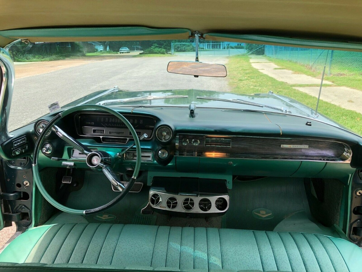 The 1960 Cadillac was everything the `59 wasn’t. Restrained, displayed a less-is-more angle in it’s styling. The lowered fins were what made this car–not over the top but in line with what a Cadillac of this vintage should have. This particular car is in great shape for being as old as me; the split in the dash pad is easily remedied with a replacement pad now available. IMHO however, I would remove the add-on AC in order to keep it’s strictly factory appearance. The deep emerald green is an unusual shade that year seldom seen today. I love it!