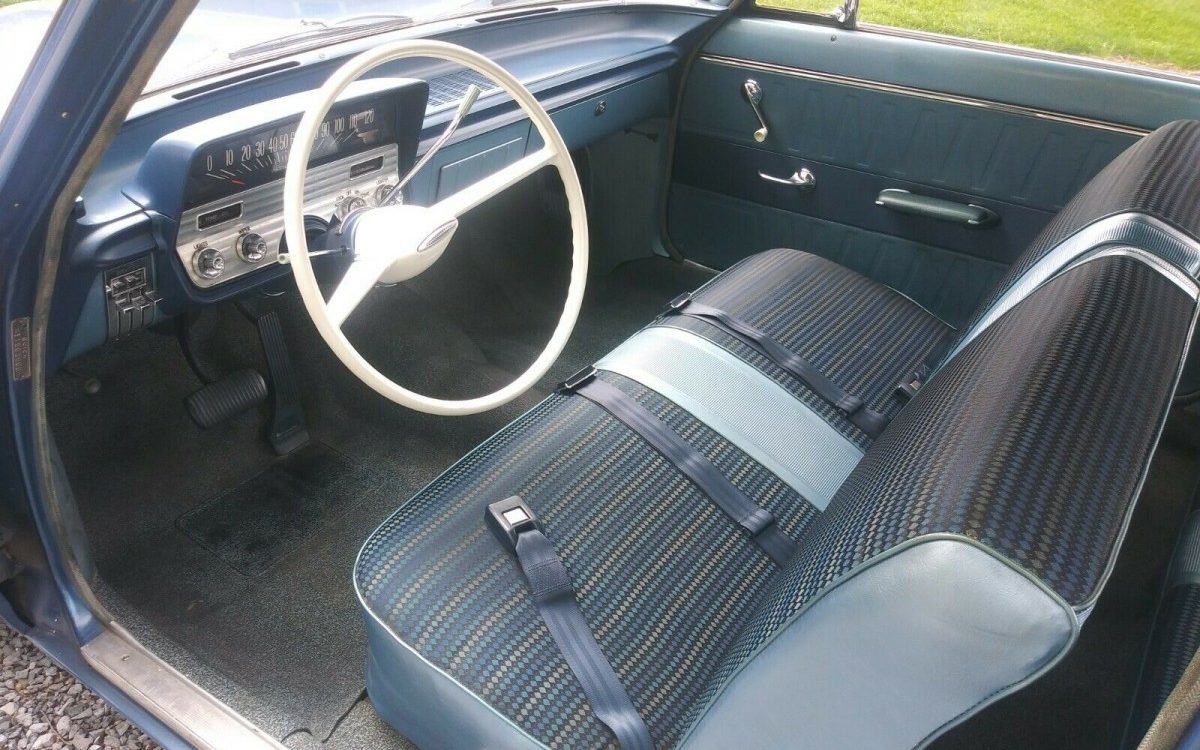 The V6 Buick Special got Motor Trend’s car of the year in 1962 if I remember correctly. There seem to be more Skylarks saved than Specials, and the aluminum V8 is seen more often than the V6. So it’s nice to see the more basic model. This one is the Special Deluxe (mid range option) based on the upholstery pattern. I question the white steering wheel – it should be blue to match the rest of the interior. If it’s really only 47,000 miles, this is a good find.