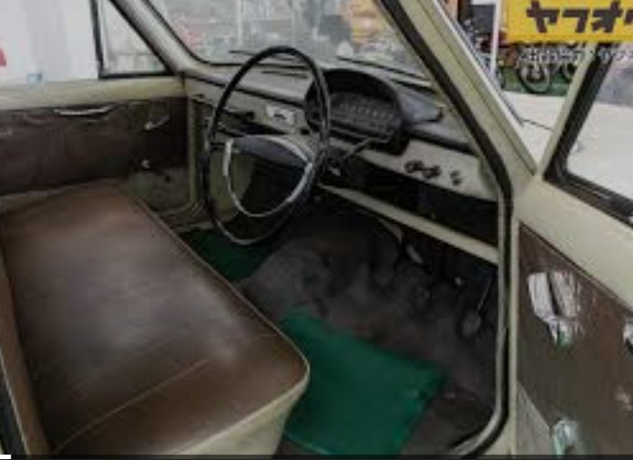 The interior looks simple, but as noted, this is swanky compared to the Briska’s cabin. The covered dash, with gauges inset into its cavity, even the patterned and padded upholstery – all these features advanced driver comfort and safety. Speaking of the dash, it’s cracked, unfortunately. This is an aftermarket steering wheel; the original is a spacey-looking affair, with an oddly large center section.