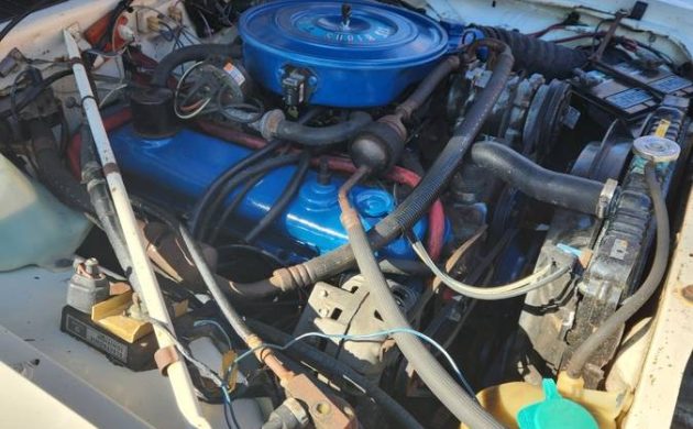 Chrysler’s venerable 225 cu. in. slant six sits underhood, paired with a three-speed automatic. The car slumbered in heated storage for 24 years, so before starting her up, the seller replaced the battery, water pump, belts and carburetor. The brake system was completely overhauled, and the tires are new. It’s had a tune-up and all the fluids have been changed. The engine bay is spiffy enough for a neighborhood show; a few hours worth of elbow grease could bring it up a notch.