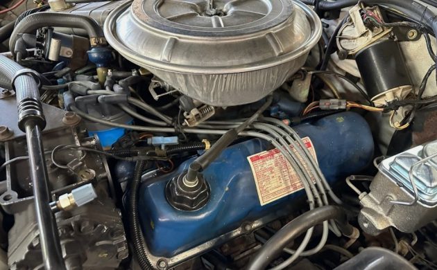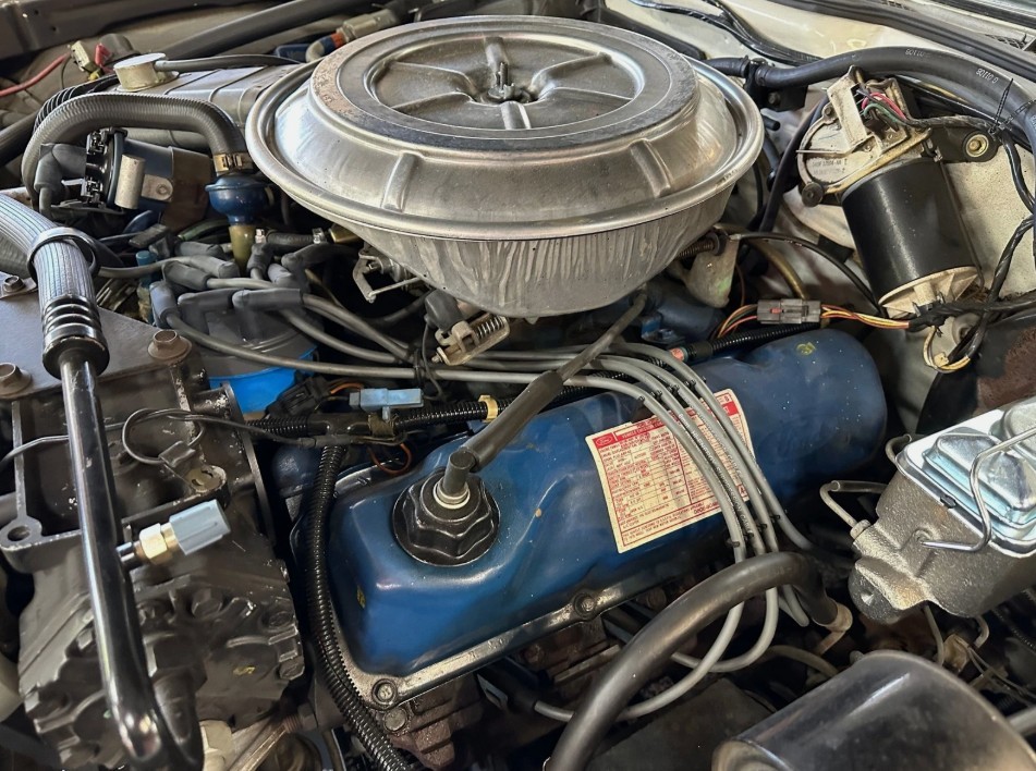 Born smack in the midst of the Malaise Era, this T-bird is powered by a 351 cu. in. V8 equipped with a two-barrel carburetor, good for about 150 hp and backed by a three-speed automatic. Despite the downgrade in engine size and power versus prior generations, the car was a handy enough performer with – for the day – decent gas mileage. The stats were aided by its smaller platform, reduced by six inches in a downsizing move that continued for two future generations. I’m pretty picky and I can’t find fault with this engine bay, though slightly contradicting the seller’s claim of “survivor”, the car has a new after-market aluminum radiator installed after the photos were taken.
